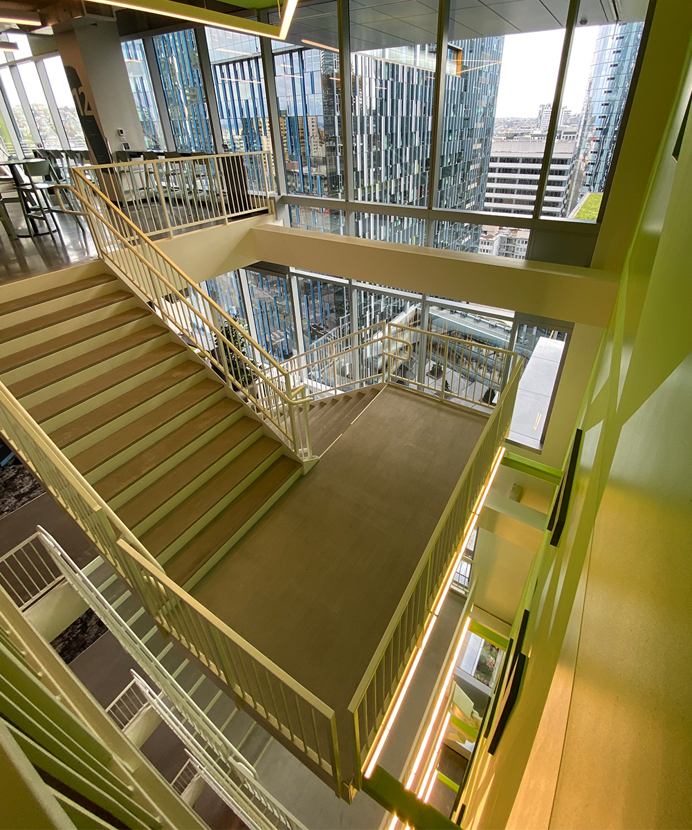 These precast concrete stairs treads are designed to minimize production, freight, install and maintenance costs. Our treads utilize a patented 100% recycled material core coated with high performing cement to minimize the use of concrete, greatly reducing weight and CO2 emissions.