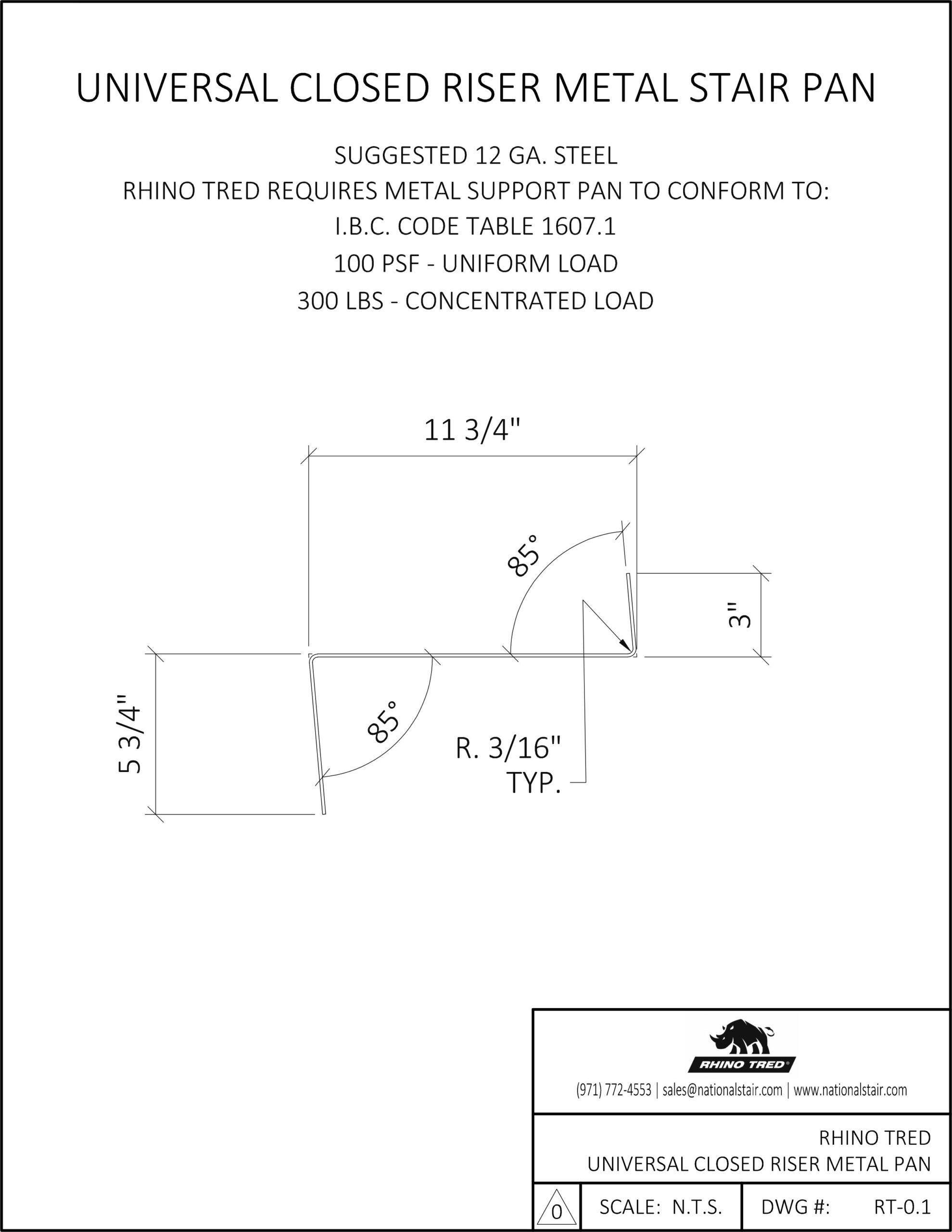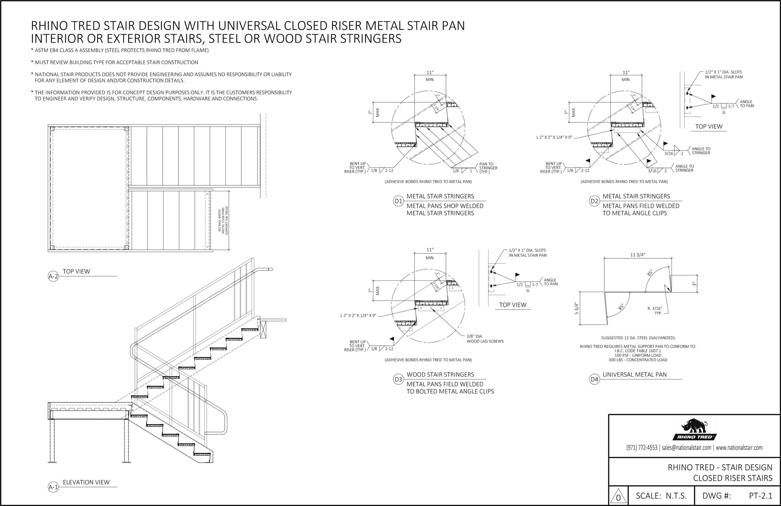 Disclaimer: Information contained here is for informational purposes only. The information is not to be construed as endorsements or recommendation for its use. While National Stair Products believes the information contained herein is accurate to the best of our knowledge, National Stair Products makes no warranty, express or implied with respect to the accuracy or readability of this information. The product data is offered for your consideration, investigation and verification. Your building code official must approve for your intended use.