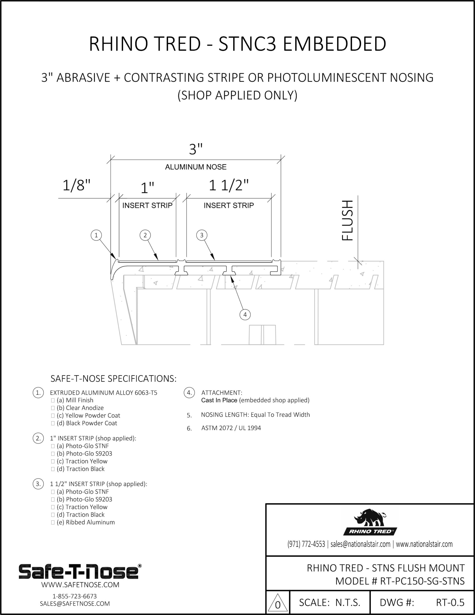 | Rhino-Tred STNC3 Embedded | Model # | Nominal Dimension (in x in) (+/- ⅛”) | Description |