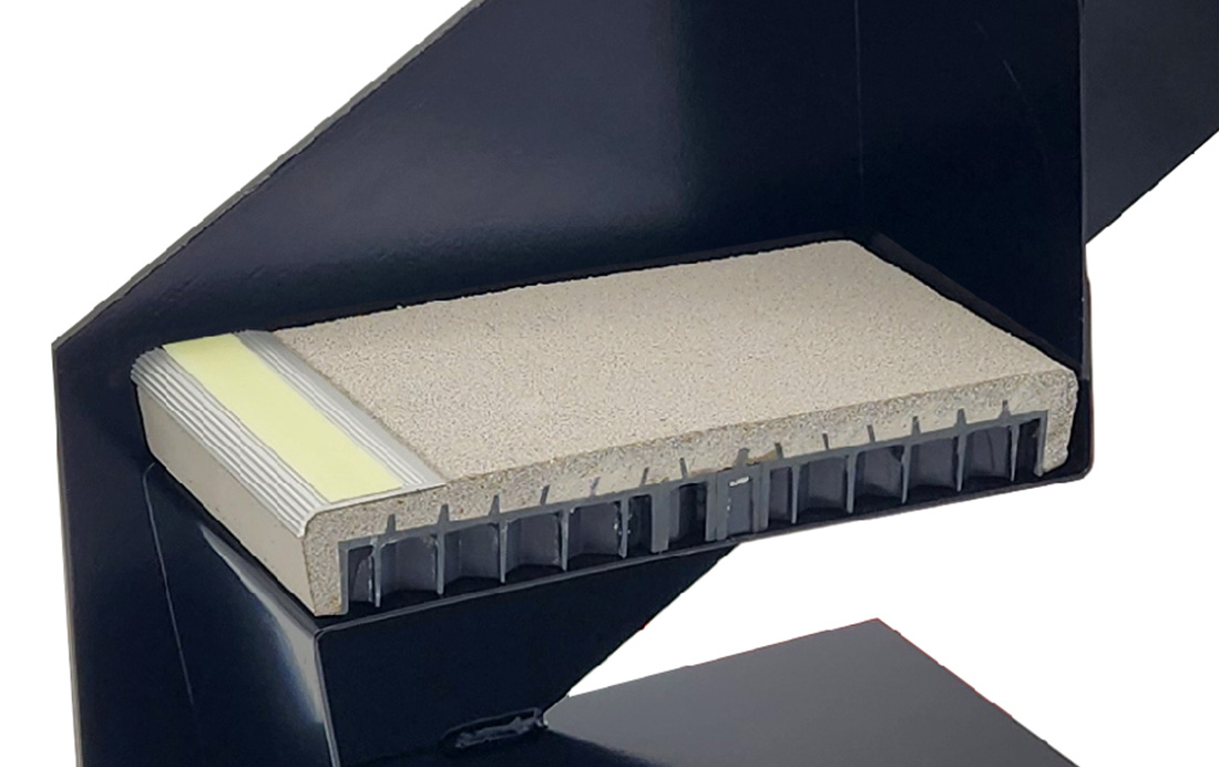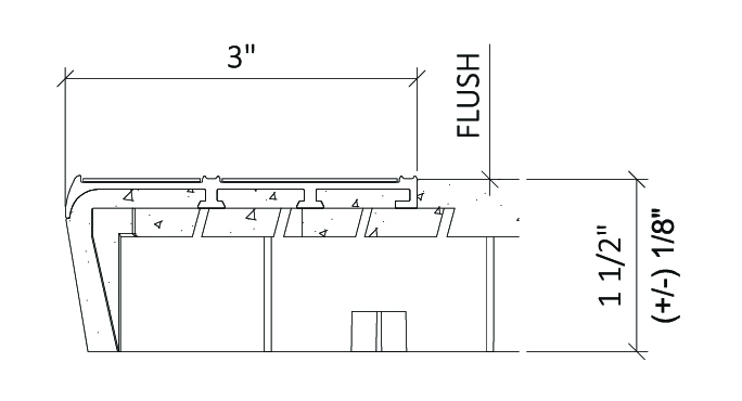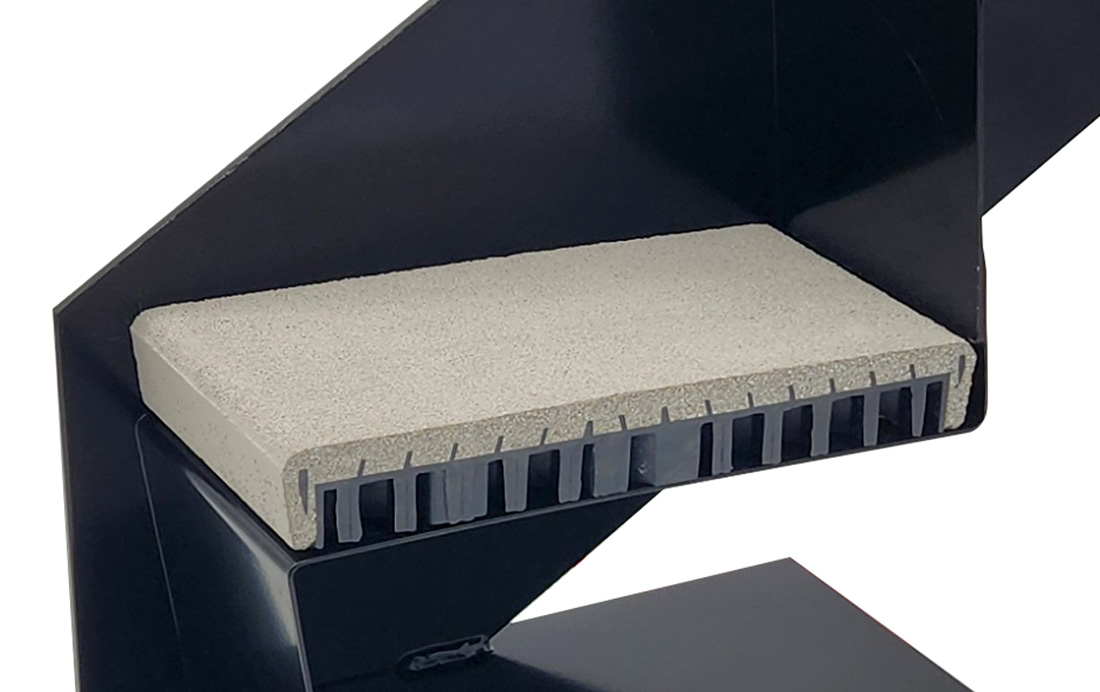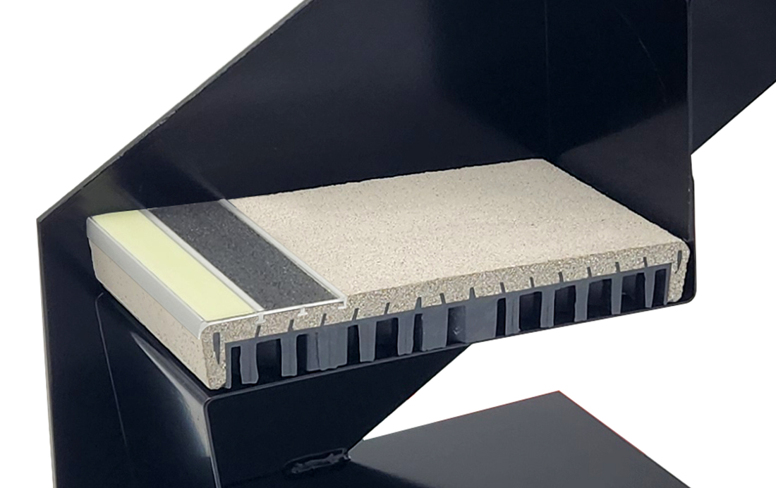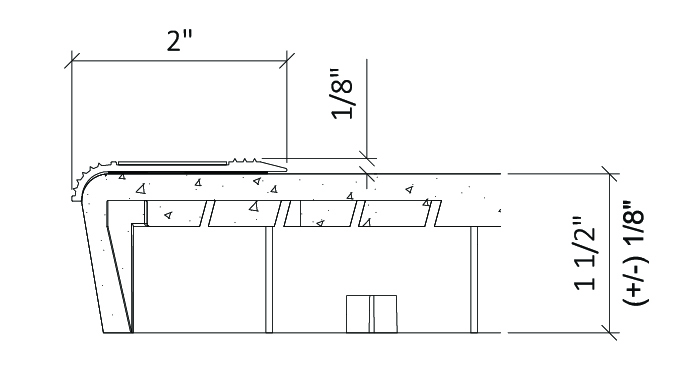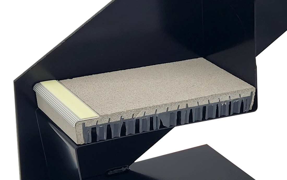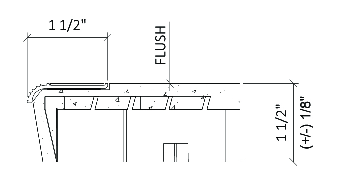 Additional costs and lead time apply. This nosing option is embedded into the wet concrete pour during manufacturing for a flush transition.