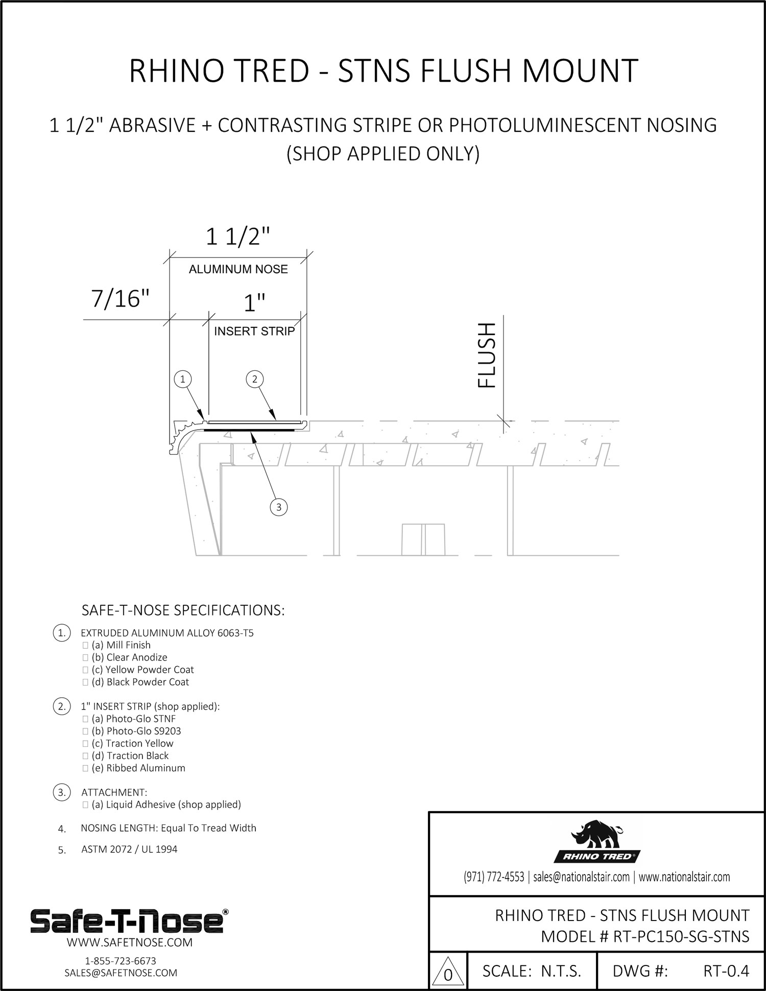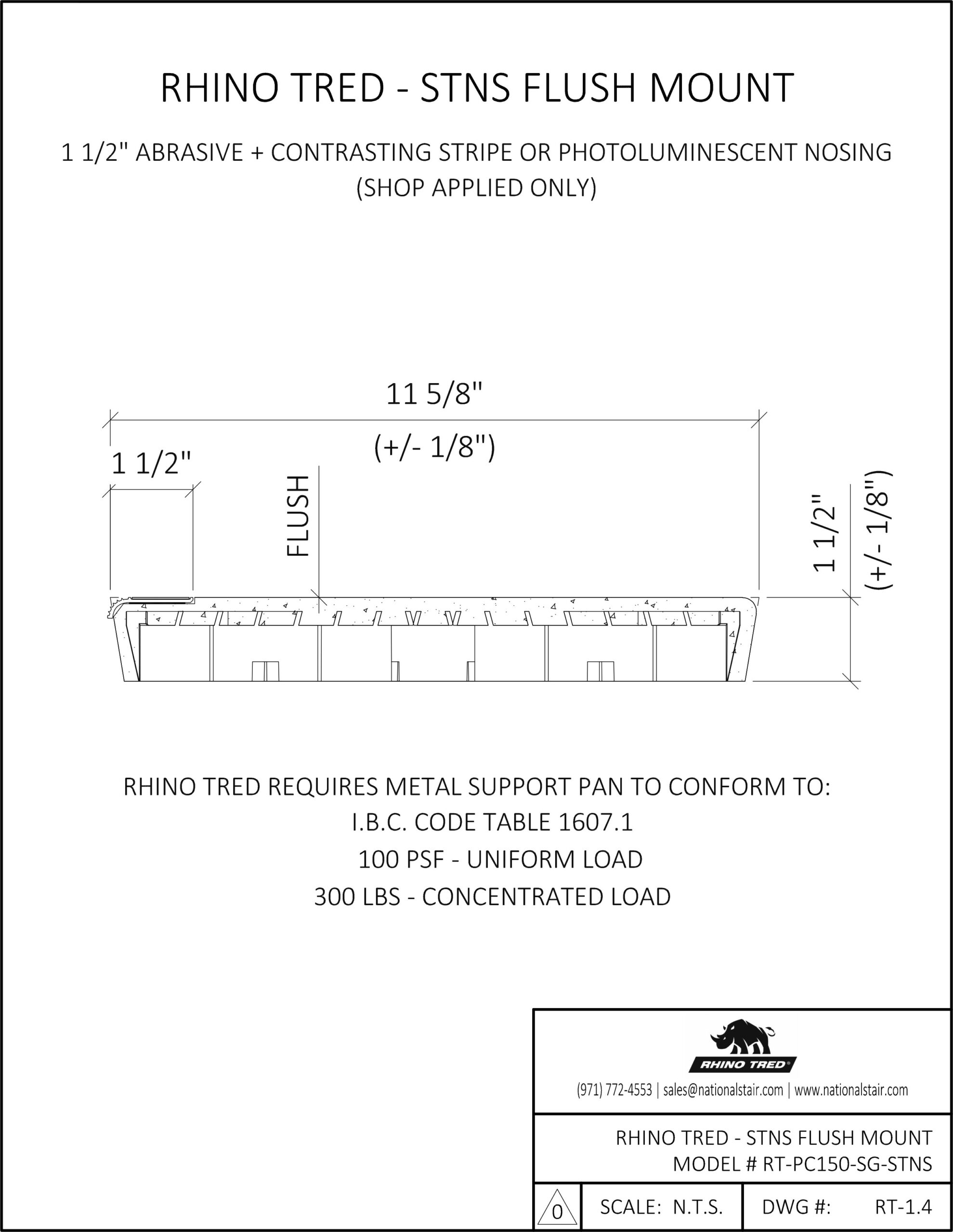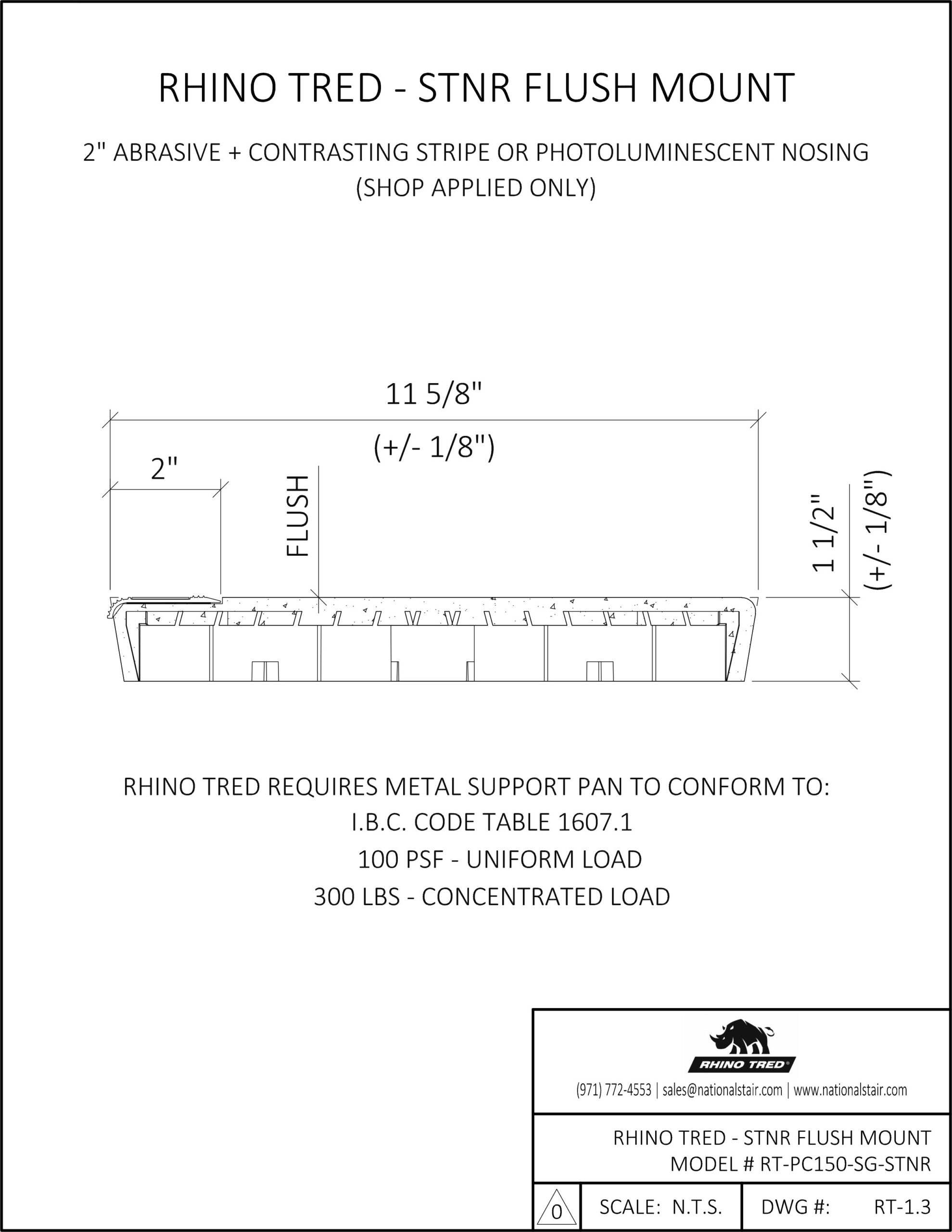 | Rhino Tred STNS Flush Mount | Model # | Nominal Dimension (in x in) (+/- ⅛”) | Description |