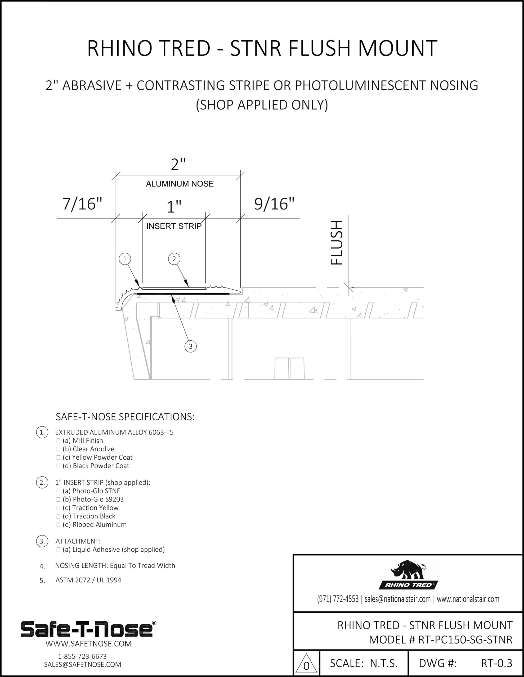 | Rhino Tred STNR Flush Mount | Model # | Nominal Dimension (in x in) (+/- ⅛”) | Description |