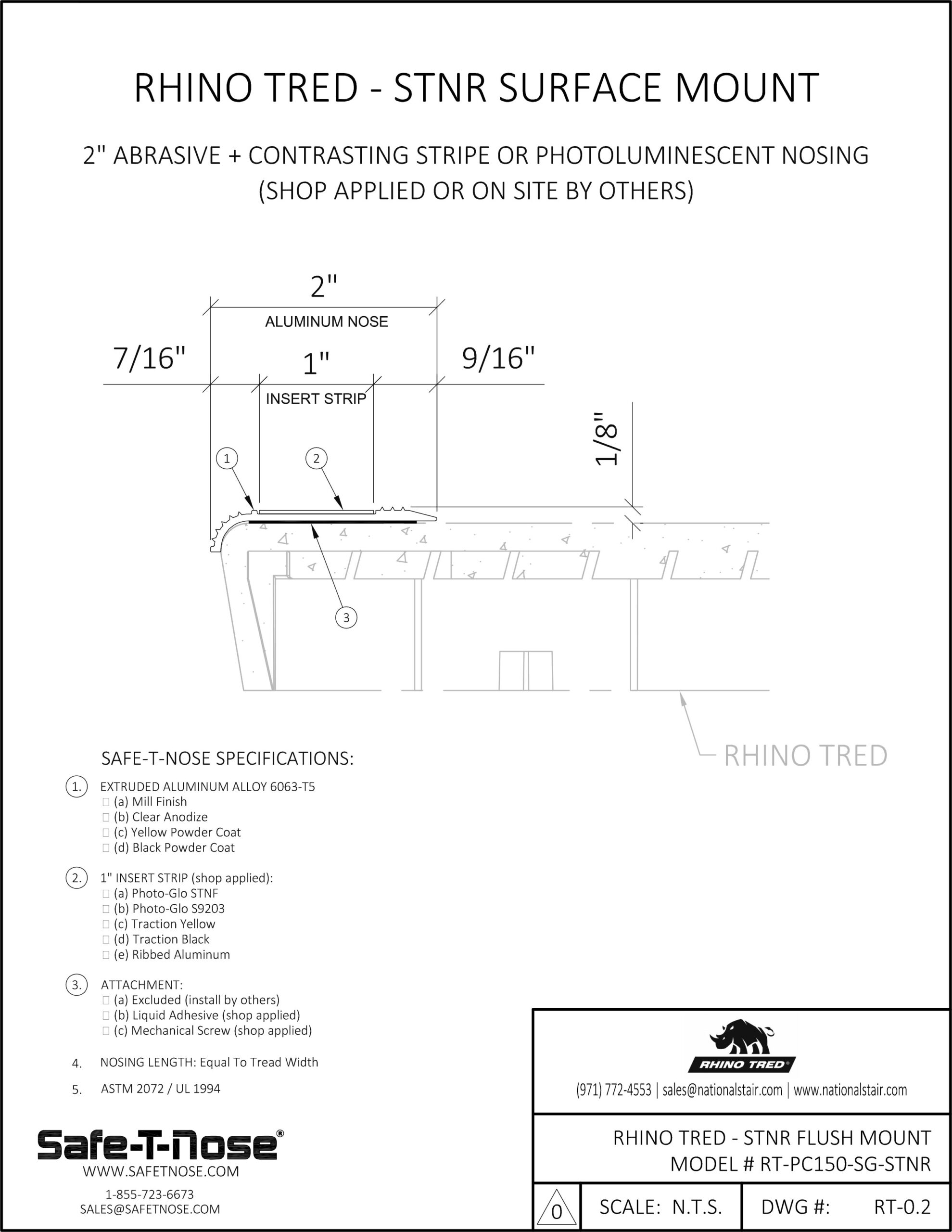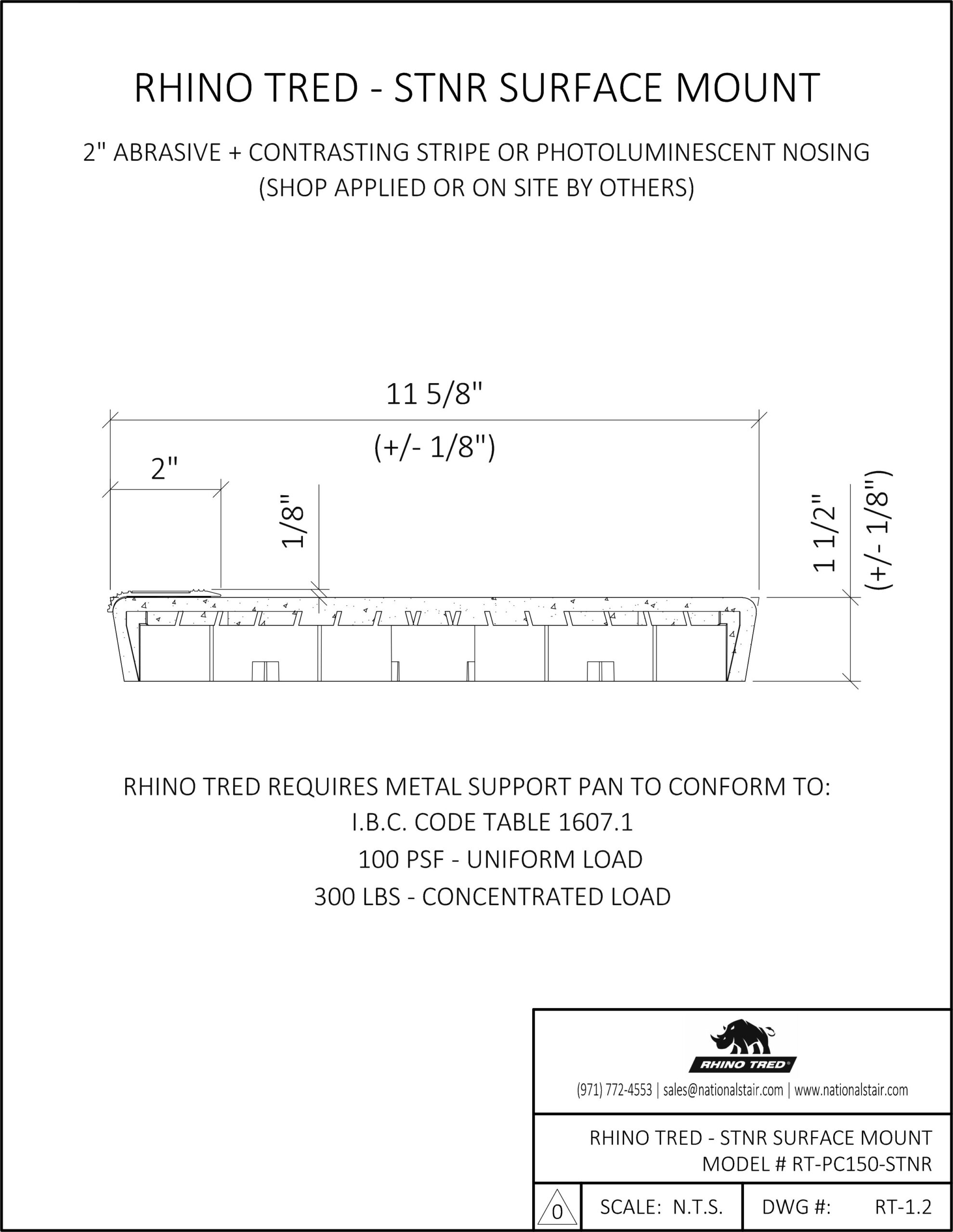 | Rhino Tred STNR Surface Mount | Model # | Nominal Dimension (in x in) (+/- ⅛”) | Description |