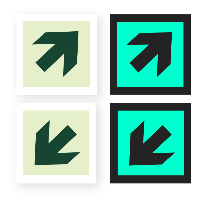 DAD | Photoluminescent diagonal arrow “Pictogram” sign. Directs occupants down or up the egress path to the final exit door.