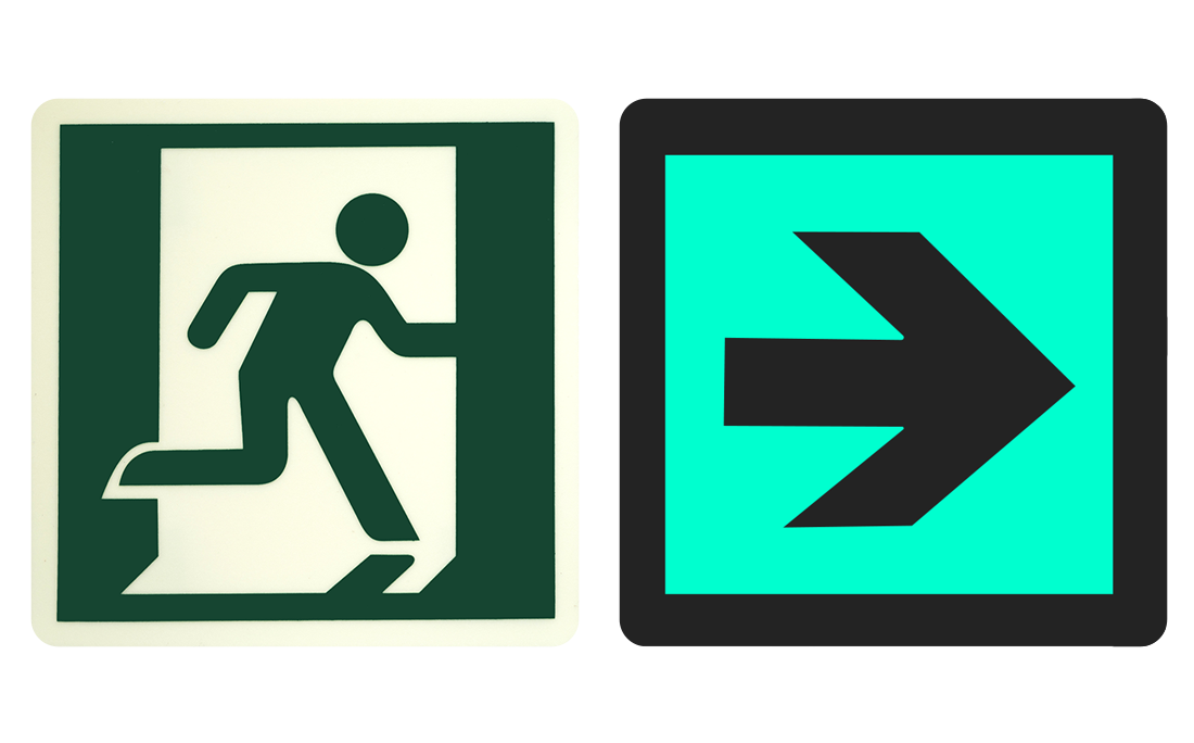 The photoluminescent path markings, such as handrail strips, floor markers, and obstacle tapes, are engineered to be highly visible and long-lasting, even in complete darkness. And our photoluminescent exit signs are available in various styles, including running man signs, final exit signs, and directional arrows.