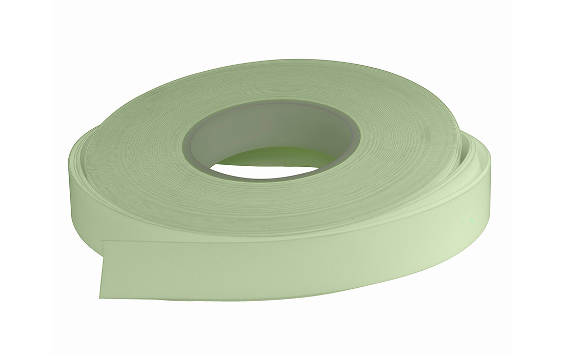 S9203(H) | Budget compliance, low to moderate use, interior applications. 1” wide acrylic vinyl photoluminescent tape with peel and stick adhesive.