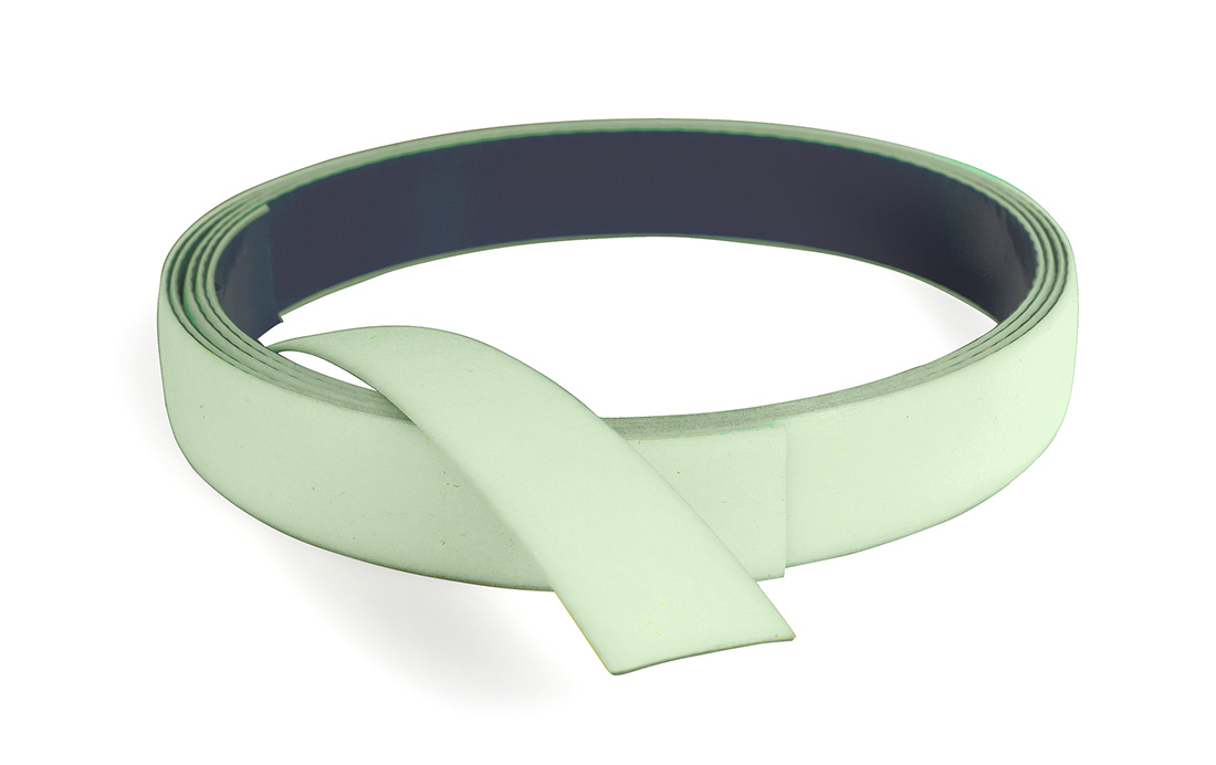 STNF | Commercial grade, high use, interior applications. Low profile, 1” wide extruded polymer resin photoluminescent perimeter marking stripe with peel and stick foam adhesive.