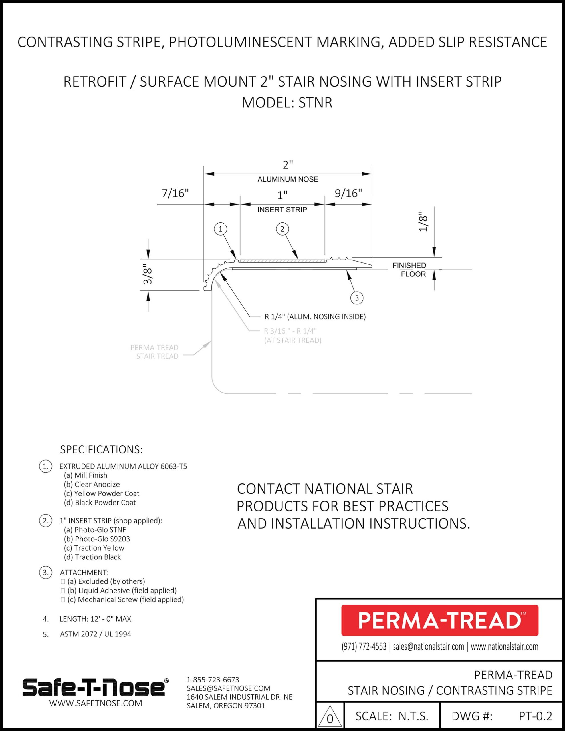 Disclaimer: Information contained in this TDS is taken from information provided by the suppliers of our raw materials. While National Stair Products believes the information contained herein is accurate to the best of our knowledge, National Stair Products makes no warranty, express or implied with respect to the accuracy or readability of this information. This data is offered for your consideration, investigation and verification.