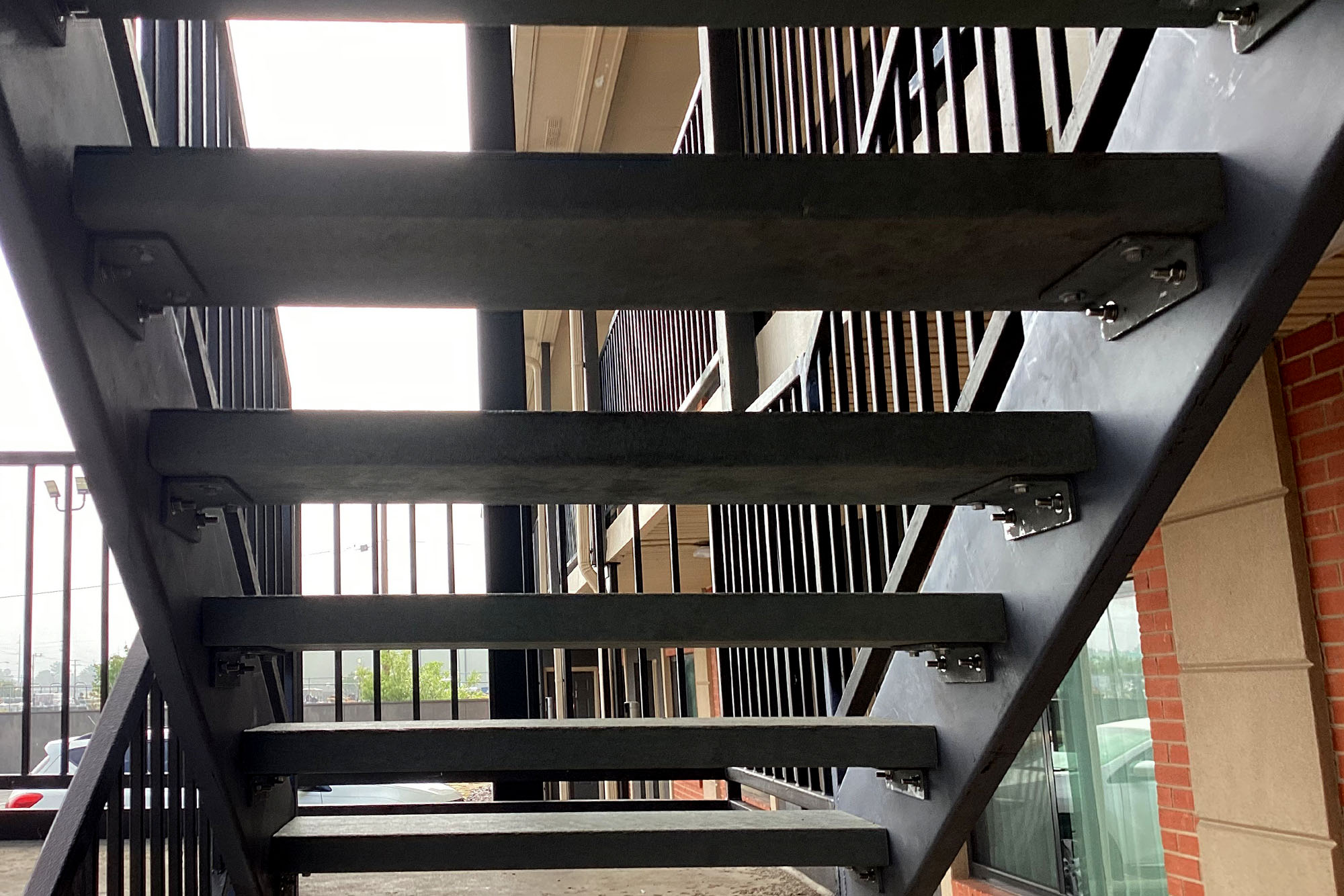 2. Metal stair with free spanning, open riser stair treads