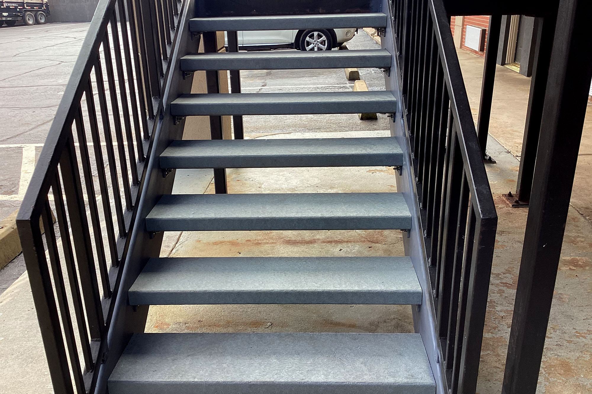 Perma-Tread was selected because of immediate availability, no loss, cost savings, no maintenance, non-corrosive properties, and for long lifespan as an alternative to precast concrete treads.