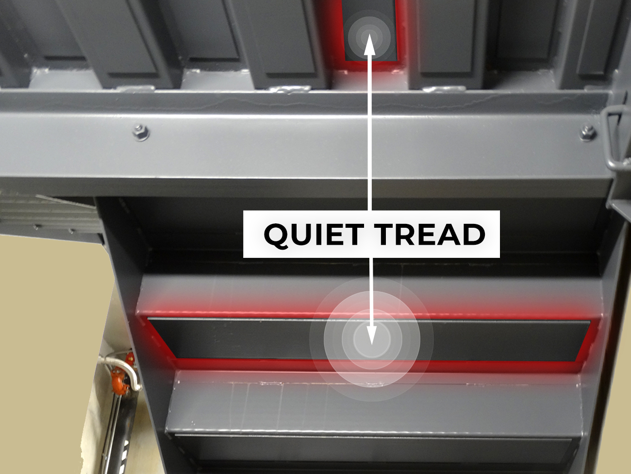 Watch our Quiet Tread videos – demonstrating diamond plate stairs with and without Quiet Tread, plus Sound Testing footage.